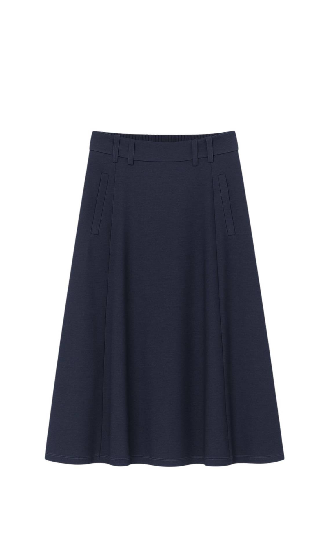 Elegant lang nederdel fra 2-Biz i blødt materiale med stilfuldt denim-look. Nederdelen har elastik i taljen for en behagelig pasform samt bæltestropper, der giver mulighed for at style med bælte. Kvalitet: 79% Polyester, 18% Viskose, 3%