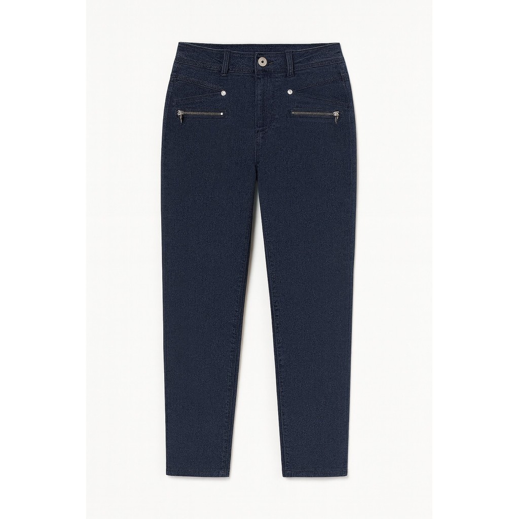 Behagelige Rany bukser fra 2-biz i dark denim. Dejlige bukser med en fin lynlåsdétail på frontlommen, samt almindelige lommer og klassiske baglommer. Rany-bukserne er lavet i et fantastisk, elastisk materiale. Kvalitet: 89% COTTON / 8% POLYESTER / 3% ELASTAN