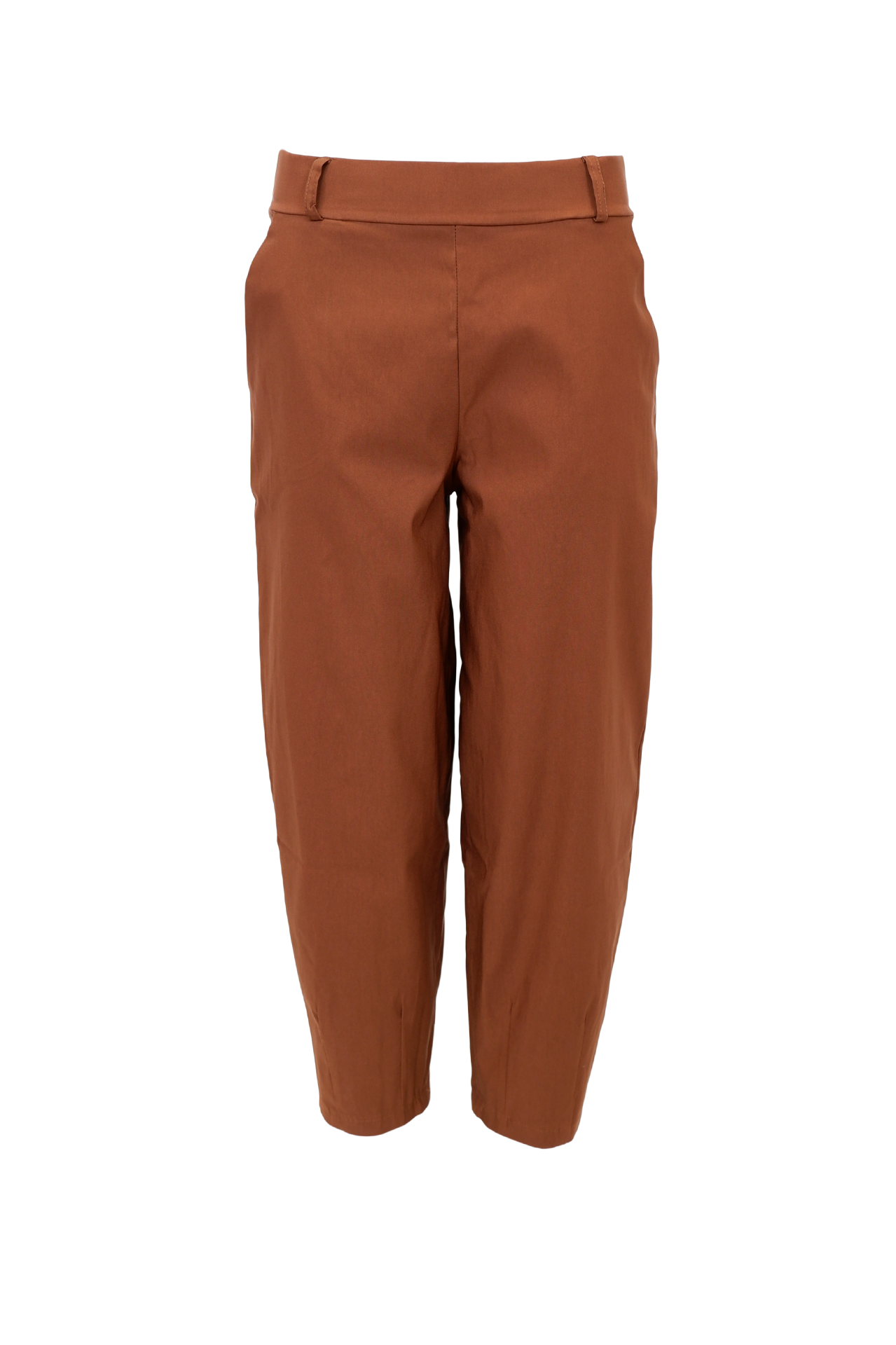 Lækre camelfarvede barrel-bukser fra Black Colour med perfekt pasform. Har elastikkant foroven og lommer i begge sider. Materiale: 85% viskose, 12% polyamid og 3% elastan. Vask: 30 grader.