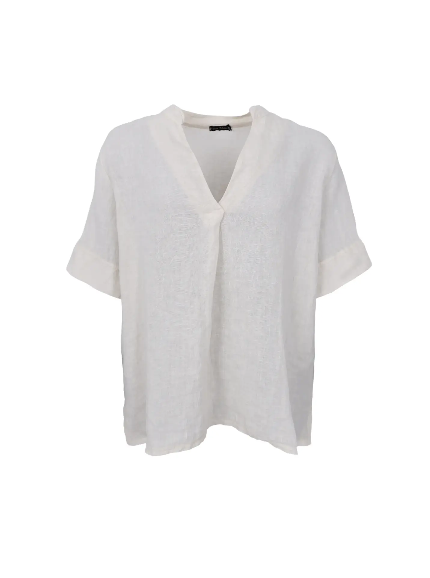Denne flotte bluse er lavet i 100% hør, hvilket gør den super lækker og åndbar at have på. Blusen har korte ærmer, små sideslidser og en feminin v-hals, der giver et fint udtryk. Style blusen med matchende hørbukser eller et par stilfulde shorts. VIGTIGT: Vores hørstyles farves individuelt fra produktion til produktion. Derfor kan vi ikke garantere at vores hørstyles matcher 100% med hinanden. Kvalitet: 100% Hør S/M: ½ bryst: 56 cm. Længde (foran): 66 cm. Længde (bagpå): 67 cm.