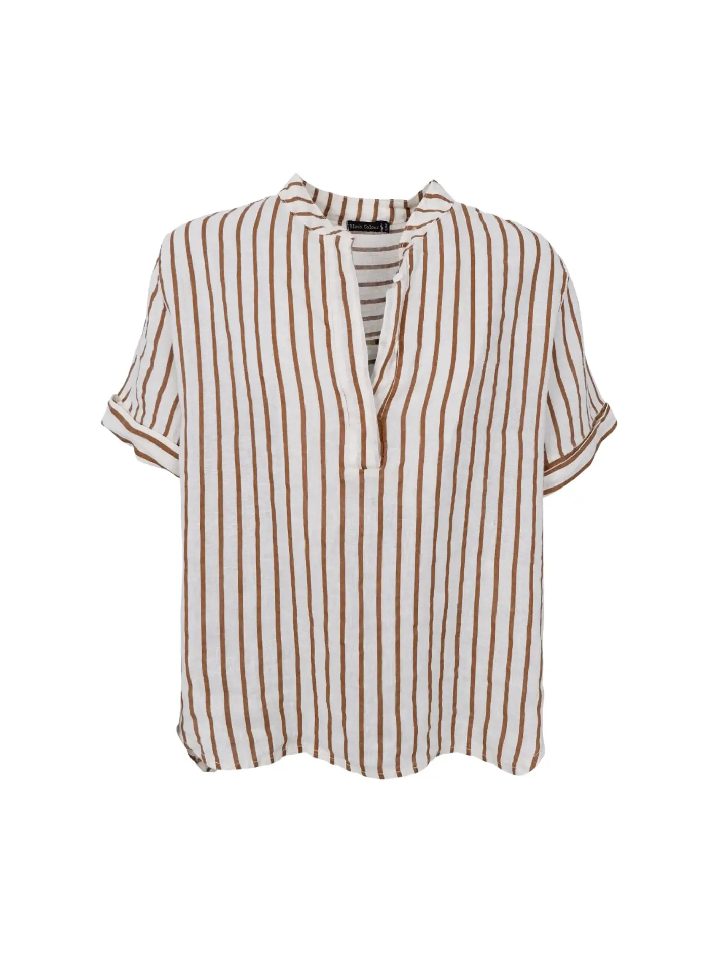 Let og afslappet bluse i et enkelt og tidløst design. Den løse pasform og det lette hør materiale giver et ubesværet og komfortabelt look - perfekt til både hverdag og varme dage. Blusen har en feminin V-udskæring med knaplukning og korte ærmer med opsmøg, der understreger det afslappede udtryk. Den enkle silhuet gør den nem at style med både bukser og nederdele. VIGTIGT: Black Colour hørstyles er indfarvet i forskellige batches. Vi kan ikke garantere præcis samme farvetone fra style til style. Kvalitet: 100% Hør S/M: ½ Bryst: 56 cm. Længde (foran): 64 cm. Længde (bagpå): 68 cm.