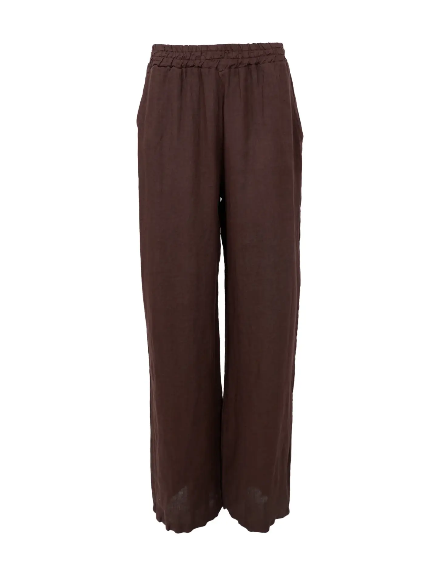 Disse bredbenede hørbukser er det perfekte valg til en afslappet og stilfuld hverdag. Fremstillet af let og åndbart hør, giver de maksimal komfort, mens det brede snit sikrer en elegant silhuet. Med deres luftige tekstur er bukserne ideelle til varme dage, og de passer lige så godt til en enkel T-shirt som til en mere sofistikeret bluse. De har en elastisk talje og et tidløst design, der gør dem til et alsidigt og behageligt tøjstykke i enhver garderobe. VIGTIGT: Black Colour hørstyles er indfarvet i forskellige batches. Vi kan ikke garantere præcis samme farvetone fra style til style. Kvalitet: 100% Hør S/M: ½ talje (afslappet): 35 cm. ½ talje (udstrakt): 48 cm. Indersøm: 79 cm.