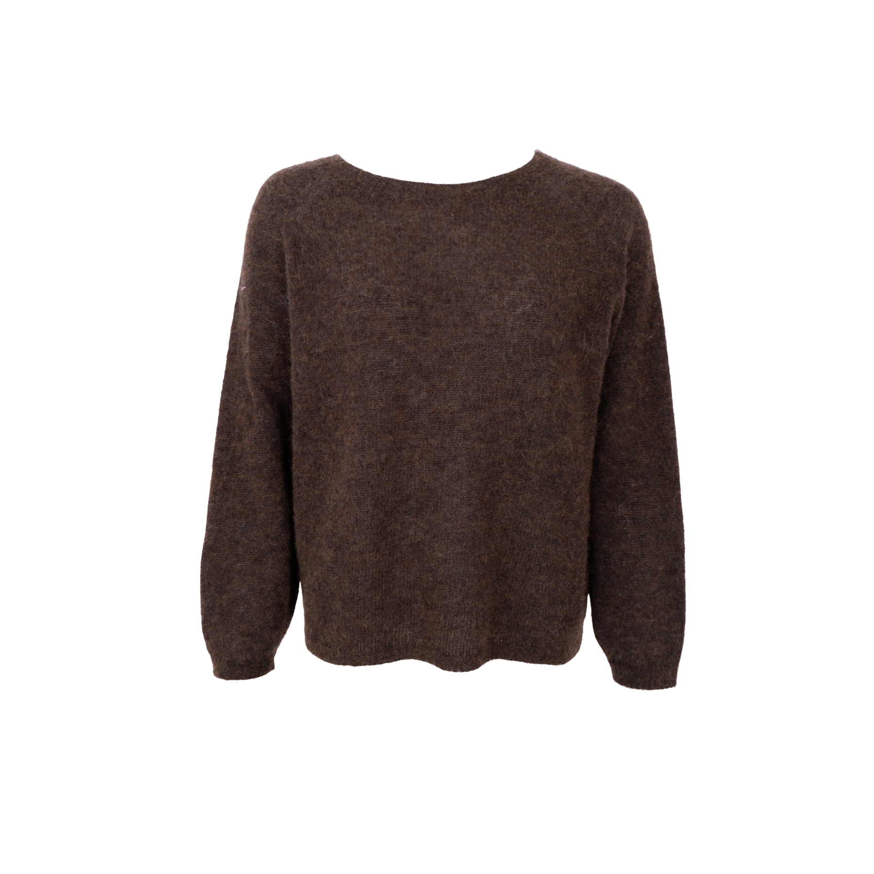 Lækker brun strik fra Black Colour. Materiale: 50% alpaka, 28% polyamid og 22% uld. Vask: håndvask.