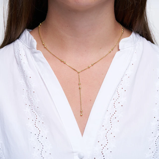 Denne elegante Camille Halskæde har en smuk silhuet, som gør det svært ikke at forelske sig i smykket. Kæden har et feminint udtryk og et børstede finish, som gør smykket alsidigt og tidsløst. Hver halskæde er håndlavet og er belagt med 24K guld. Halskæden måler 42 cm + 5 cm.