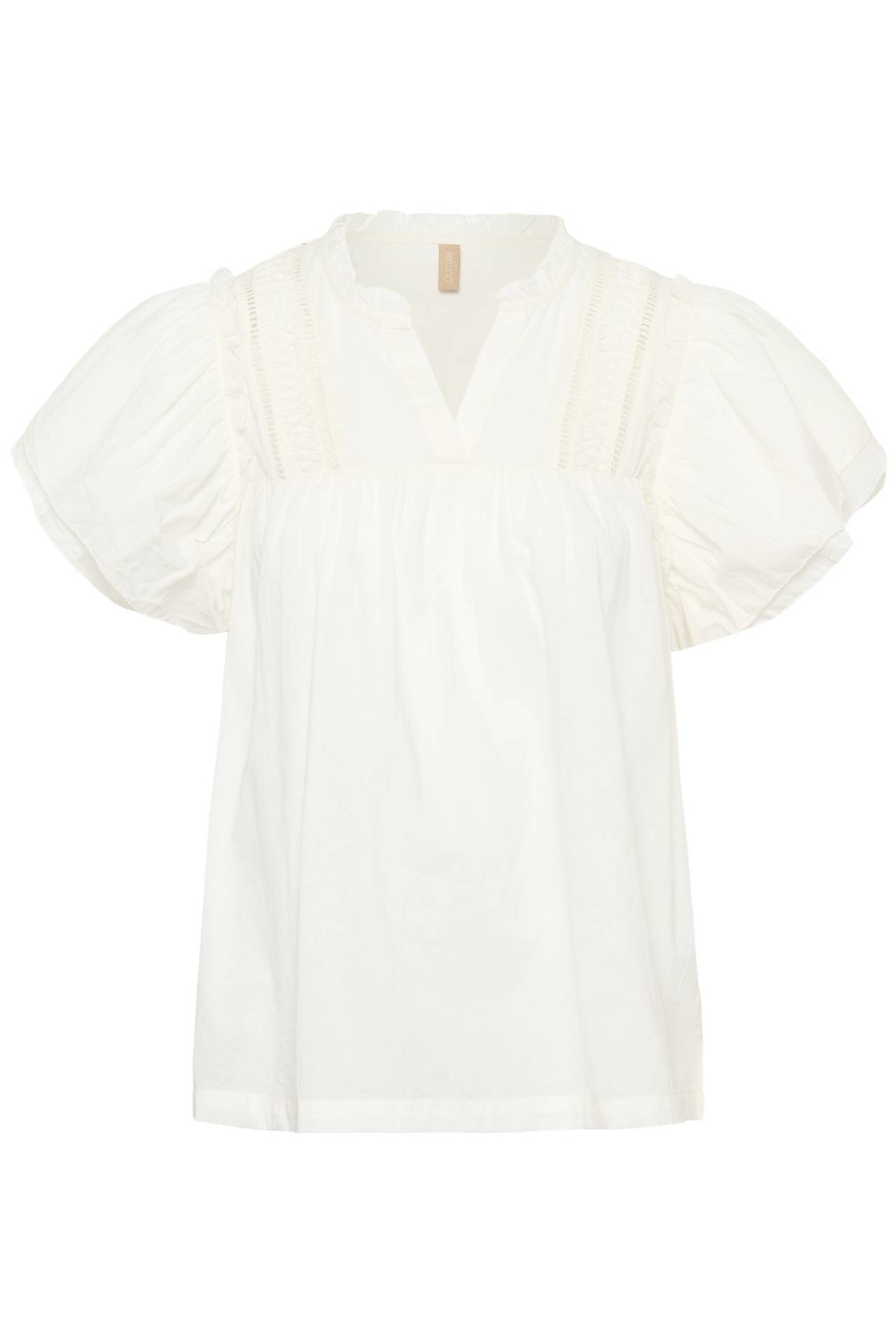 Smuk og klassisk bluse i hvid fra Culture. Let og feminin bluse i en luftig kvalitet med fine, dekorative detaljer. Designet med korte, voluminøse ærmer og en løs pasform, der giver et elegant og afslappet udtryk. En alsidig bluse, der nemt kan styles til både hverdag og mere feminine looks. Kvalitet: 100% Bomuld