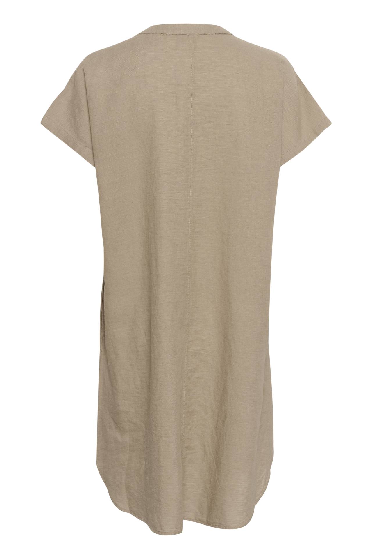 Super smuk hørkjole fra Culture i brun. Den har kinakrave med v-udskæring og korte ærmer. Den har en løs pasform og er knælang. Styles med en sød sandal eller sneakers. Kvalitet: 55% Linen, 45% Cotton Vask: 30 grader skånevask