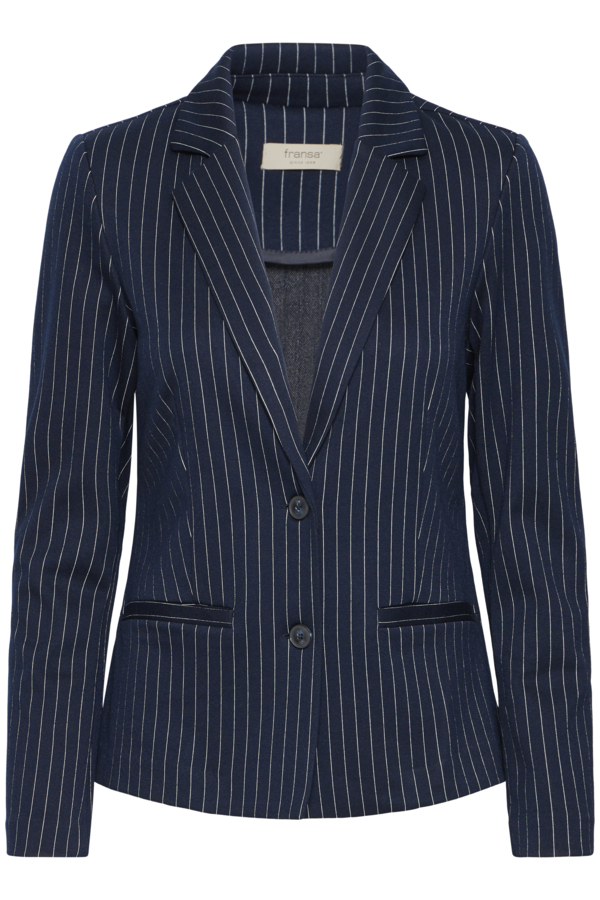 Klassisk navy skjorte med hvide striber. Har to knapper foran. Materiale: 73% polyester, 25% viskose og 2% elastan. Vask: 30 grader.