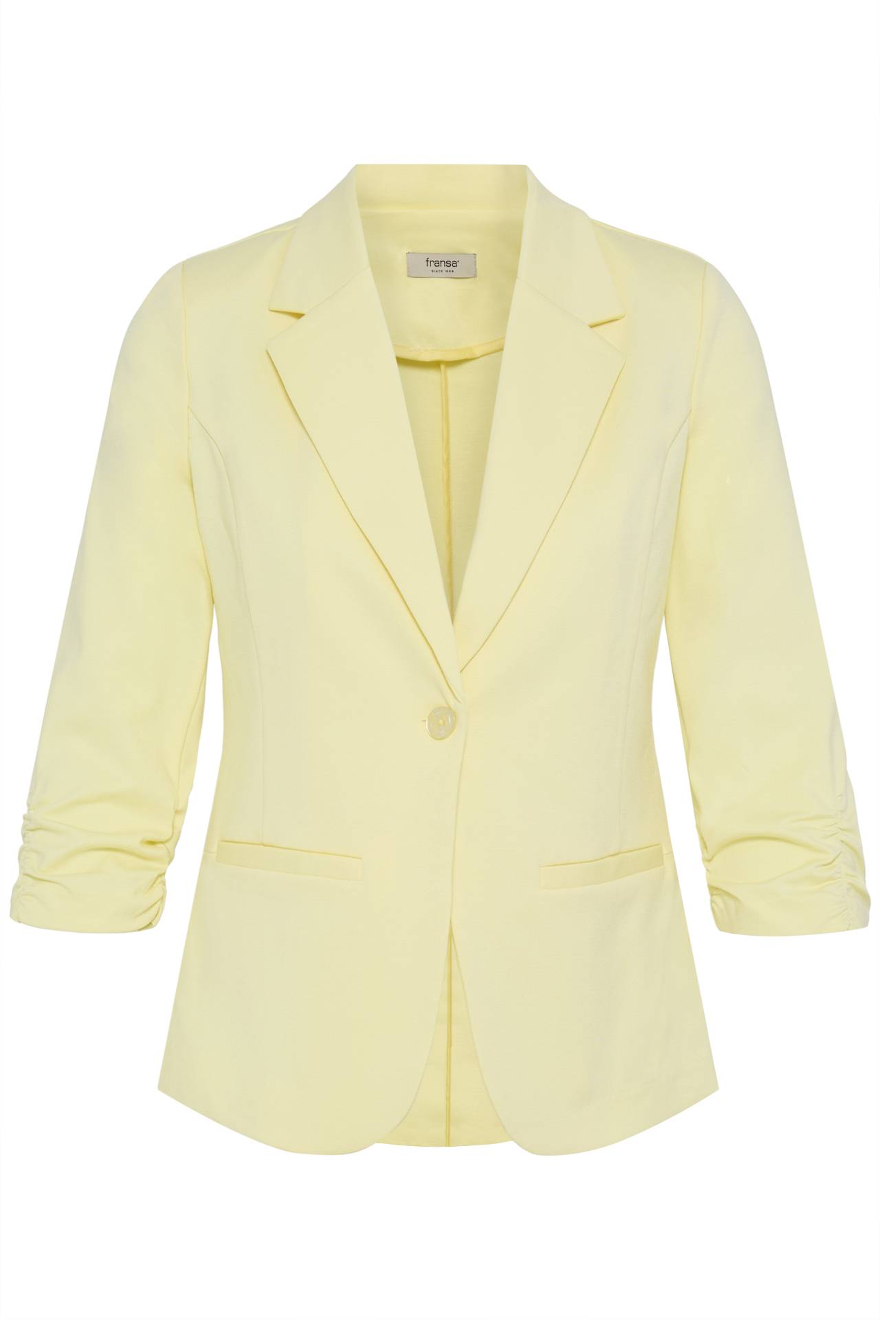 Super flot og klassisk blazer fra Fransa i strækbar materiale. Den har en klassisk model og normal pasform og normal længde. Den har lange ærmer, samt lommer i siden og knap foran. Style den til en kjole eller en overdel med en underdel. Kvalitet: 74% Polyester,21% Viscose,5% Elastane