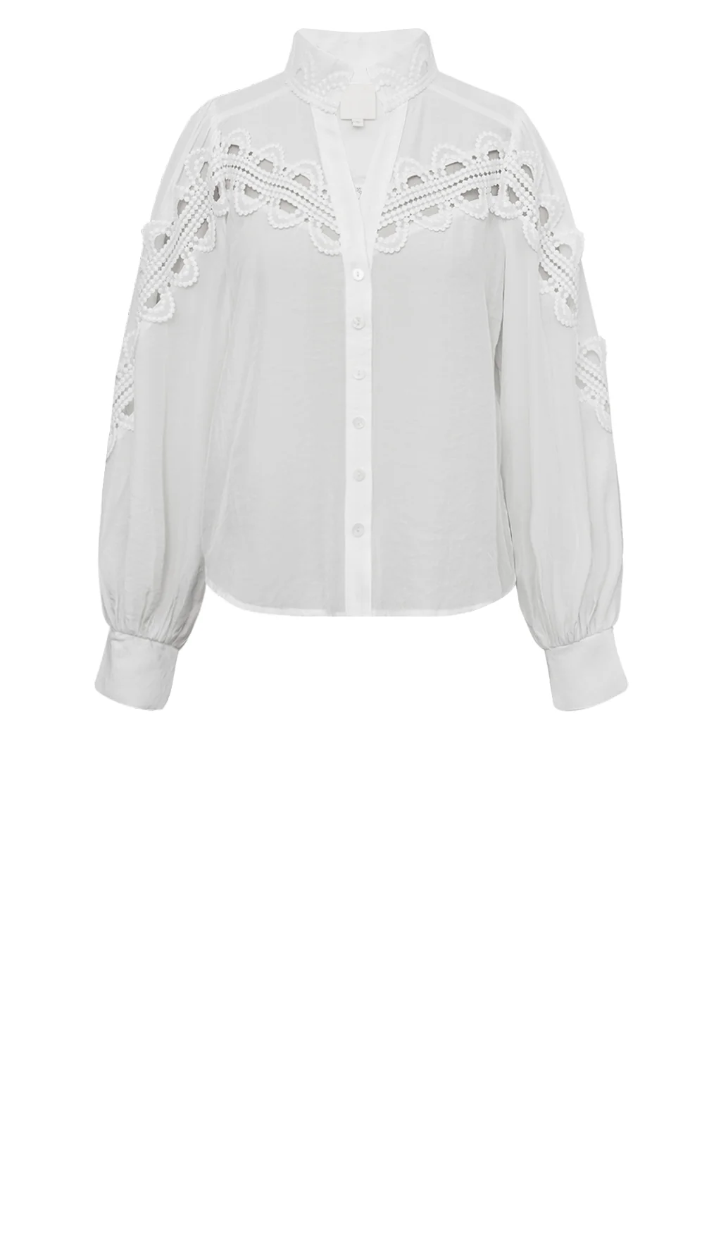 Smuk og tidløs skjorte med eksklusive blondedetaljer En elegant og sofistikeret skjorte i et let skinnende stof, hvilket giver et ekstra eksklusivt udtryk. De fine blondedetaljer på ærmer, bryst og ryg skaber et feminint og delikat look, hvilket gør skjorten perfekt til både hverdag og særlige lejligheder. En tidløs favorit, der løfter ethvert outfit. Brystmål: XS/104 cm, S/108 cm, M/112 cm, L/118 cm, XL/124 cm Længde: XS/61 cm, S/62 cm, M/63 cm, L/64,5 cm, XL/66 cm Kvalitet: 57% Polyester - 43% Viskose