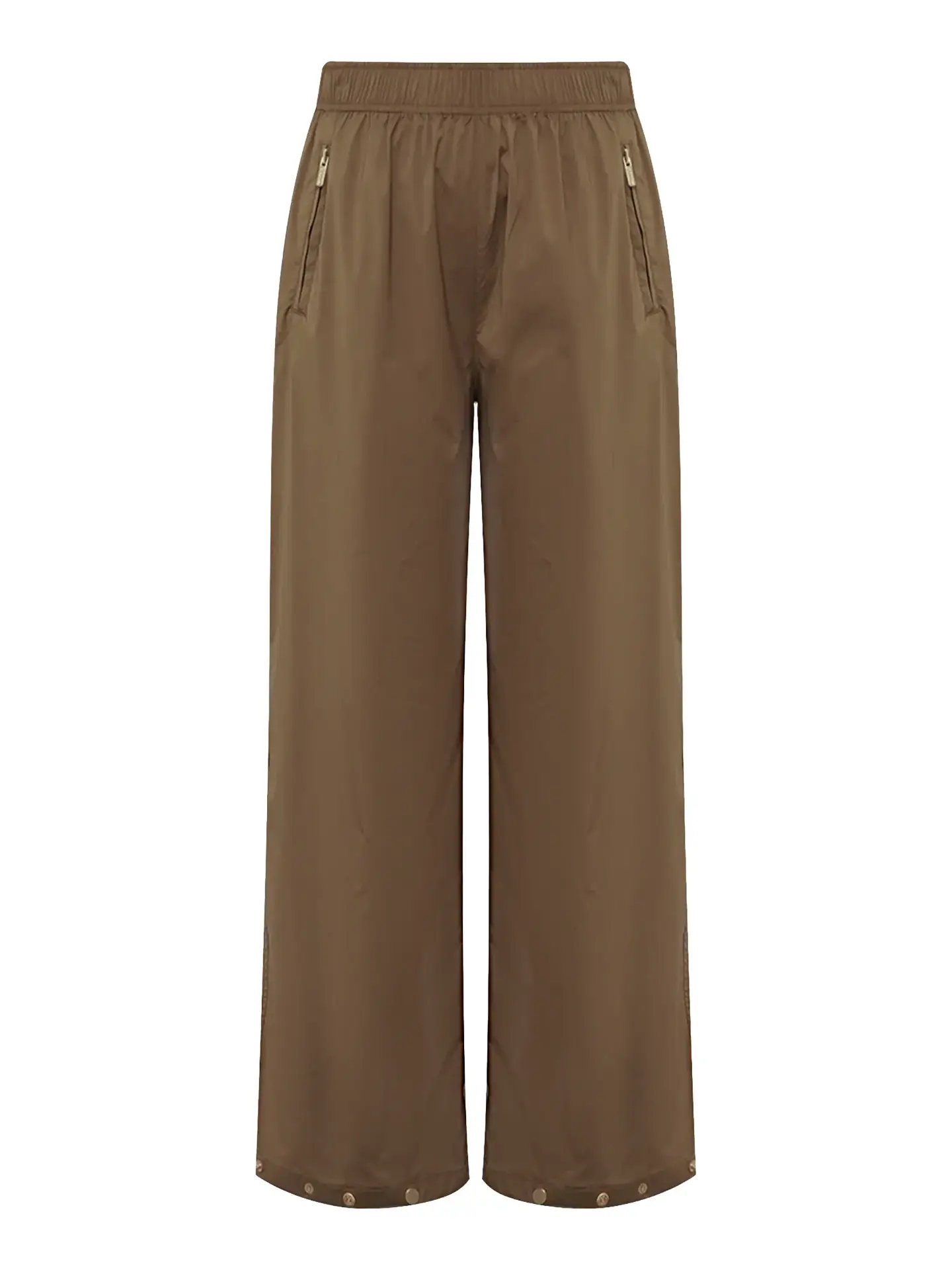 Sporty ballonbukser i en lækker kvalitet med elastik i taljen. Et komfortabelt og stilfuldt par bukser med et moderne, sporty udtryk. Den ballonformede silhuet giver volumen og karakter, mens elastikken i taljen sikrer en fleksibel og behagelig pasform. Bukserne har praktiske forlommer med elegante guldlynlåse, der tilfører et eksklusivt touch, samt en enkelt baglomme med et Gossia-logo nedenunder. I benåbningen er der fine guldtrykknapper, som gør det muligt at justere benvidden og skabe forskellige looks alt efter styling. Et alsidigt par bukser, der kombinerer funktionalitet og feminine detaljer - perfekte til både afslappede hverdagsoutfits og et mere sporty look. Talje: XS/68 cm, S/72 cm, M/76 cm, L/82 cm, XL/88 cm Indersøm: XS/76 cm, S/76 cm, M/76 cm, L/76 cm, XL/76 cm Farve: Golden Nugga Kvalitet: 95% Polyester - 5% Elastane