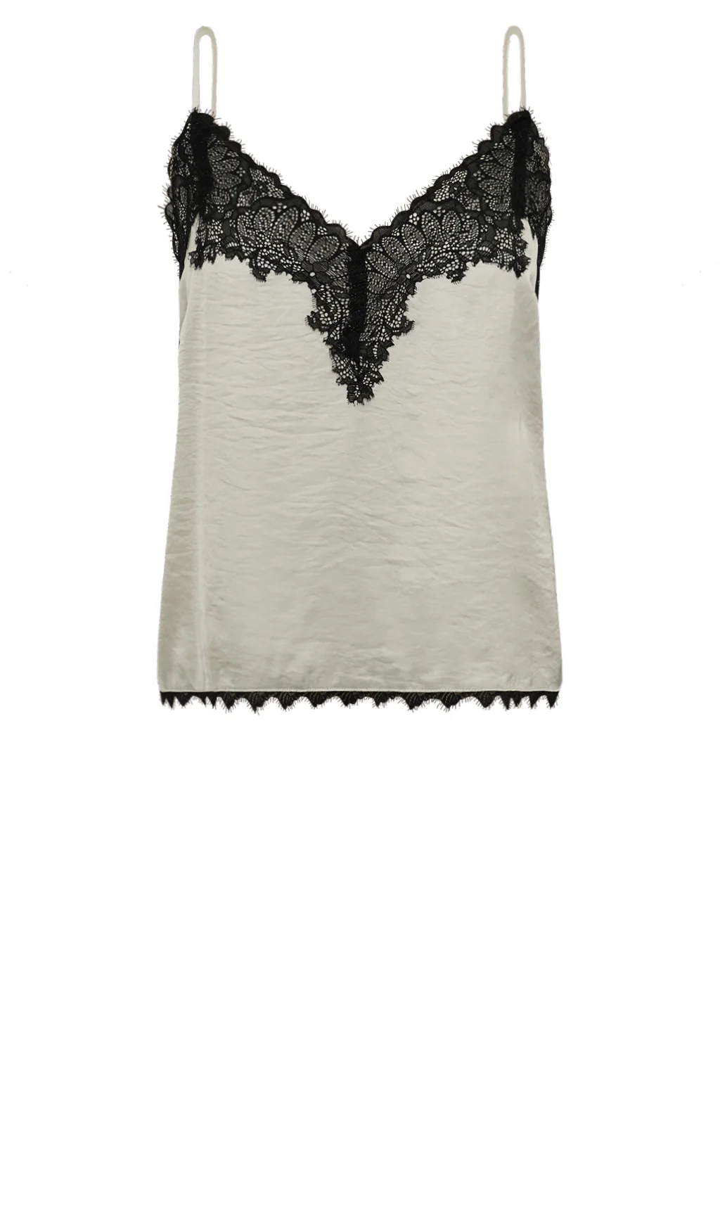 ZessaliGO Top elegant satin med kontrastblonde ZessaliGO Top er en smuk top i lækker, blød satin kvalitet, der falder flot og føles behagelig mod huden. Den fine kontrastblonde tilfører et eksklusivt og feminint udtryk, mens de justerbare stropper gør toppen nem at tilpasse for optimal pasform og komfort. En elegant top, der kan styles både til hverdag og fest. Bryst: XS/86 cm, S/90 cm, M/94 cm, L/100 cm, XL/106 cm Længde: XS/52,5 cm, S/53,5 cm, M/54,5 cm, L/56 cm, XL/57,5 cm Kvalitet: 54% Polyester-46% Viscose
