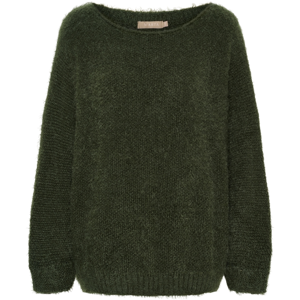 Blødeste strik fra Marta i army. Blød og fluffy kvalitet for ekstra komfort Rund halsudskæring og lange ærmer for et klassisk design Afslappet pasform, der klæder alle figurer Ideel til både afslappede og mere elegante looks Denne trøje er et must-have til din garderobe - den er tidløs, behagelig og stilfuld! Kvalitet: 50% acryl, 30% polyamid, 10% uld og 10% viscose Størrelse: S/M Længde: 56 cm Brystmål: ca. 114 cm Størrelse: L/XL Længde: 59 cm Brystmål: ca. 120 cm