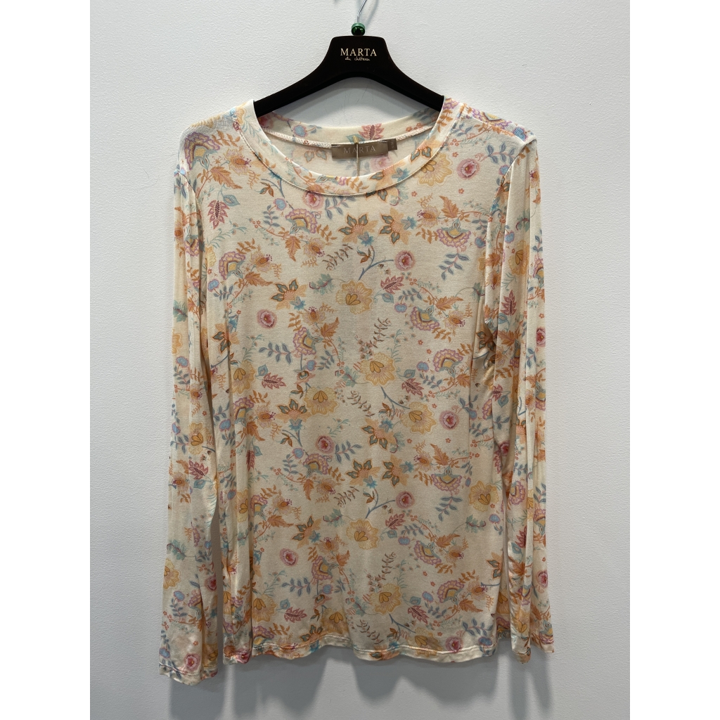 Klassisk og smart bluse fra Marta du Château i beige print. Den er med lange ærmer i let og luftig kvalitet. Den er nem at style med kort ærmede strik eller kjole over. Den runde halsudskæring og bløde kvalitet gør den både behagelig og flatterende at have på, uanset om du bruger den alene eller som basislag under en strik eller blazer. Blusen er perfekt til både hverdag og festlig styling. Kvalitet: 95% Modal og 5% Elastane.