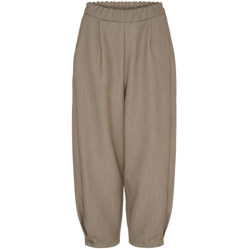 Bløde og komfortable bukser i en brun nuance, der giver et afslappet og moderne look. Bukserne har en elastik i taljen og en løs pasform, som gør dem nemme at style til både hverdag og weekend. De kan bruges med en skjorte, t-shirt eller strik for et cool outfit. Materiale: 77% polyester, 17% viscose, 6% elastan