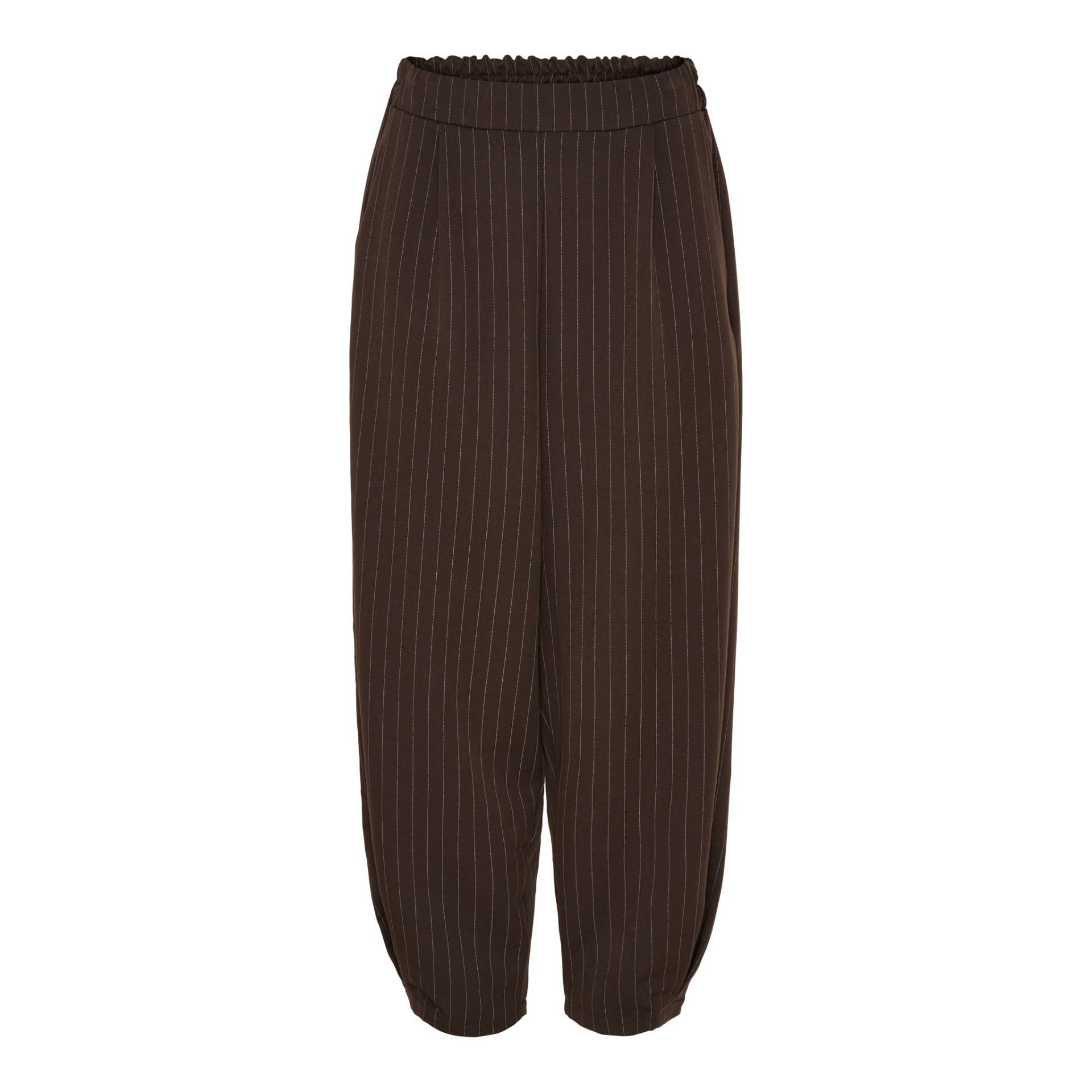 Skøn stribet buks i baggy model med lille læg på front Elastik i taljen og skrålommer. Match Blazer Kval. 78% Polyester 18% Viscose 4% Elastan Vask 30 gr