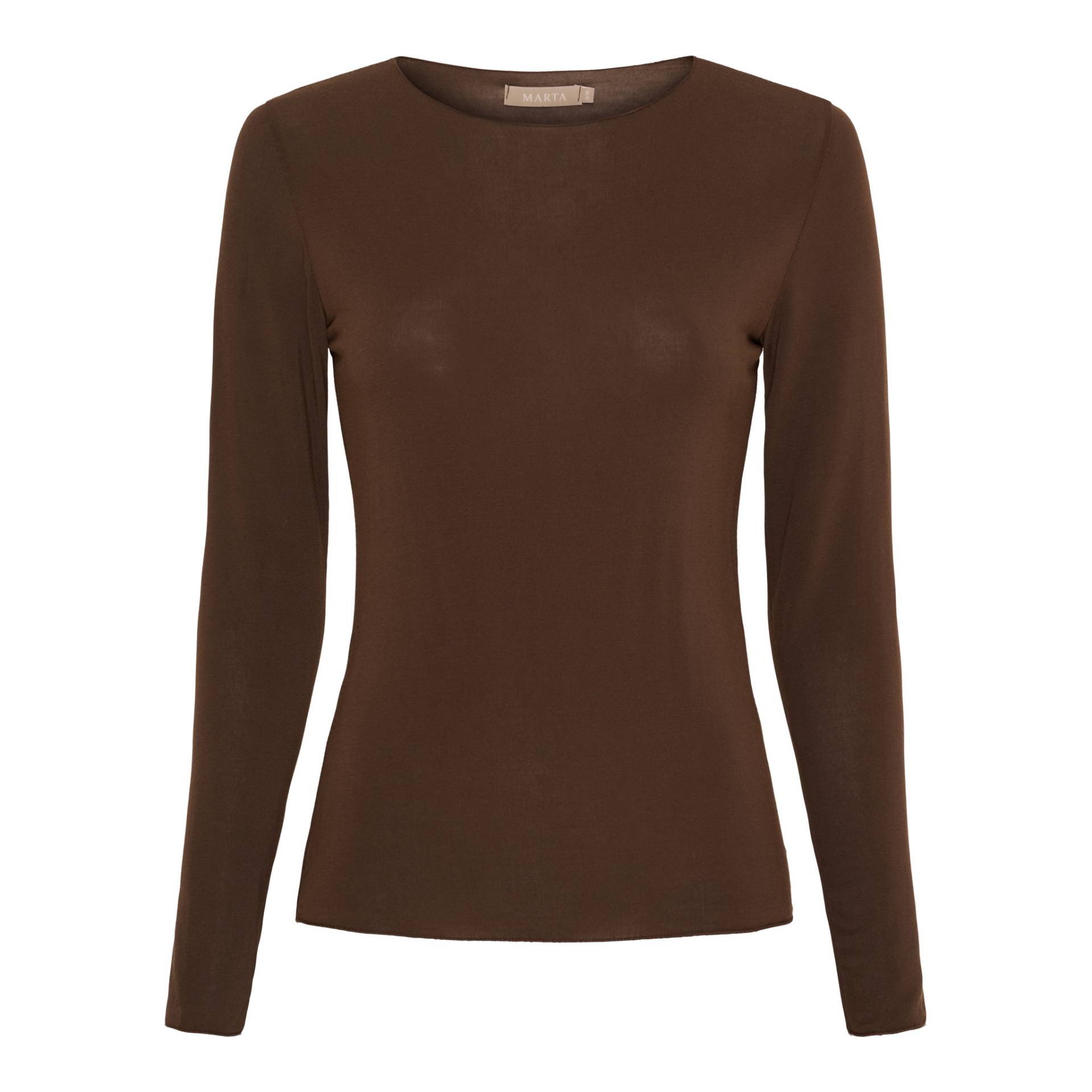 Dejlig brun basis-bluse fra Marta. Er meget strækbar. Materiale: 94% mikro modal og 6% elastan. Vask: 30 grader.