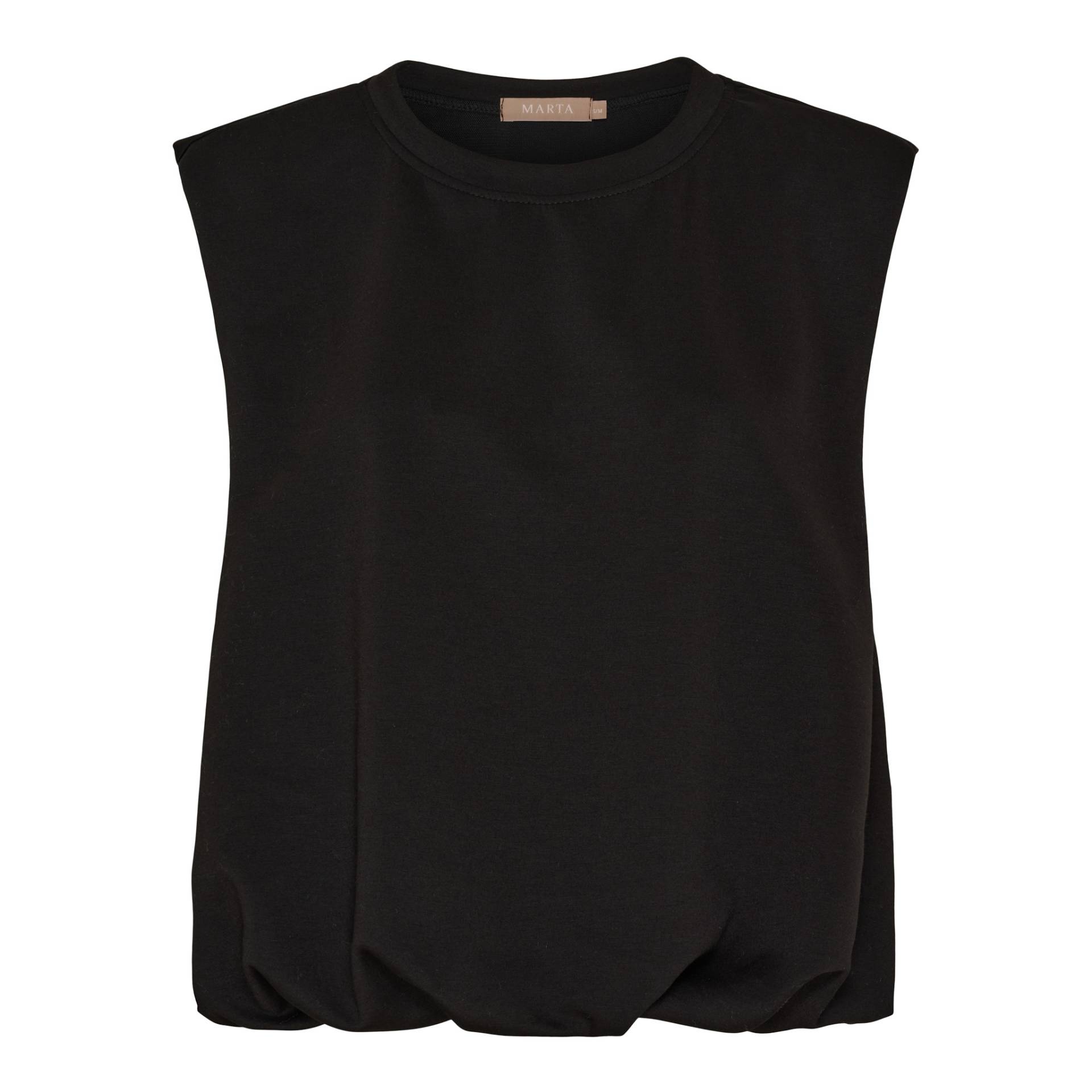 Lækre sorte bukser fra Marta. Bukserne er barrel-formede og har elastikkant foroven. Materiale: 77% polyester, 17% viskose og 6% elastan. Vask: 30 grader.