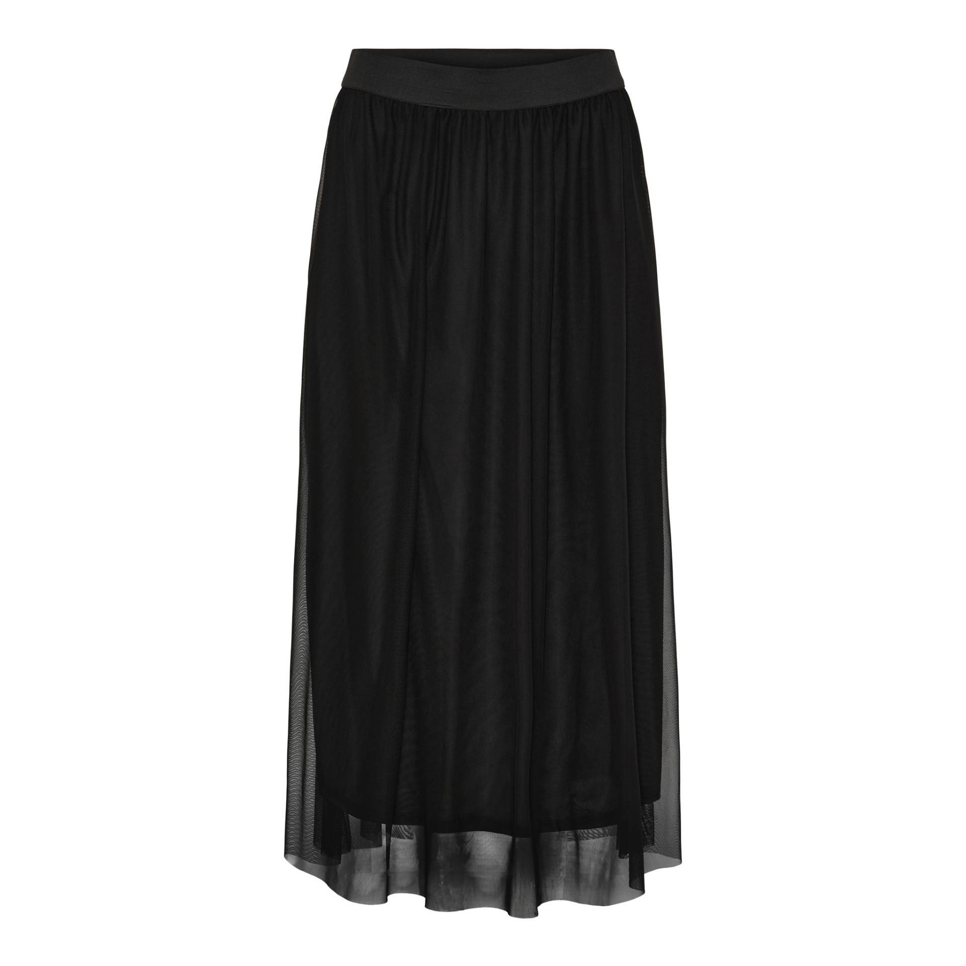 Lækker sort nederdel fra Marta. Nederdelen er A-formet og har elastikkant foroven. Materiale: 94% polyester og 6% elastan. Vask: 30 grader.