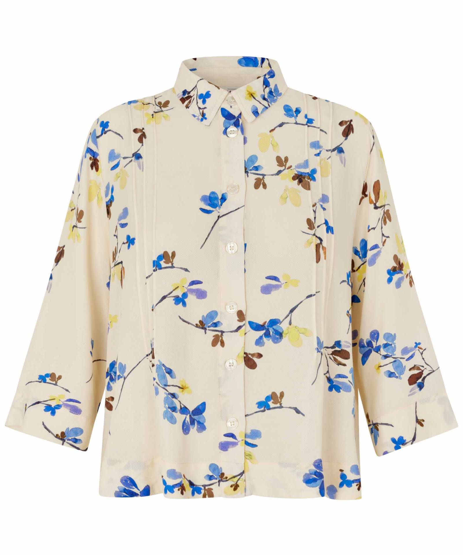 Her får du en smuk viskoseskjorte, der føles blød og let mod huden. Det korte, boxy snit med dekorative syninger foran og små slidser i siderne giver skjorten et cool udtryk og masser af bevægelsesfrihed. Det blomstrede print tilfører et elegant, feminint touch og gør skjorten perfekt til både hverdag og mere stilfulde anledninger. Style den med jeans eller enkle bukser for et ubekymret og stilfuldt look. Pasform:A-Shape Materiale:100% viskose Vask:Skånevask