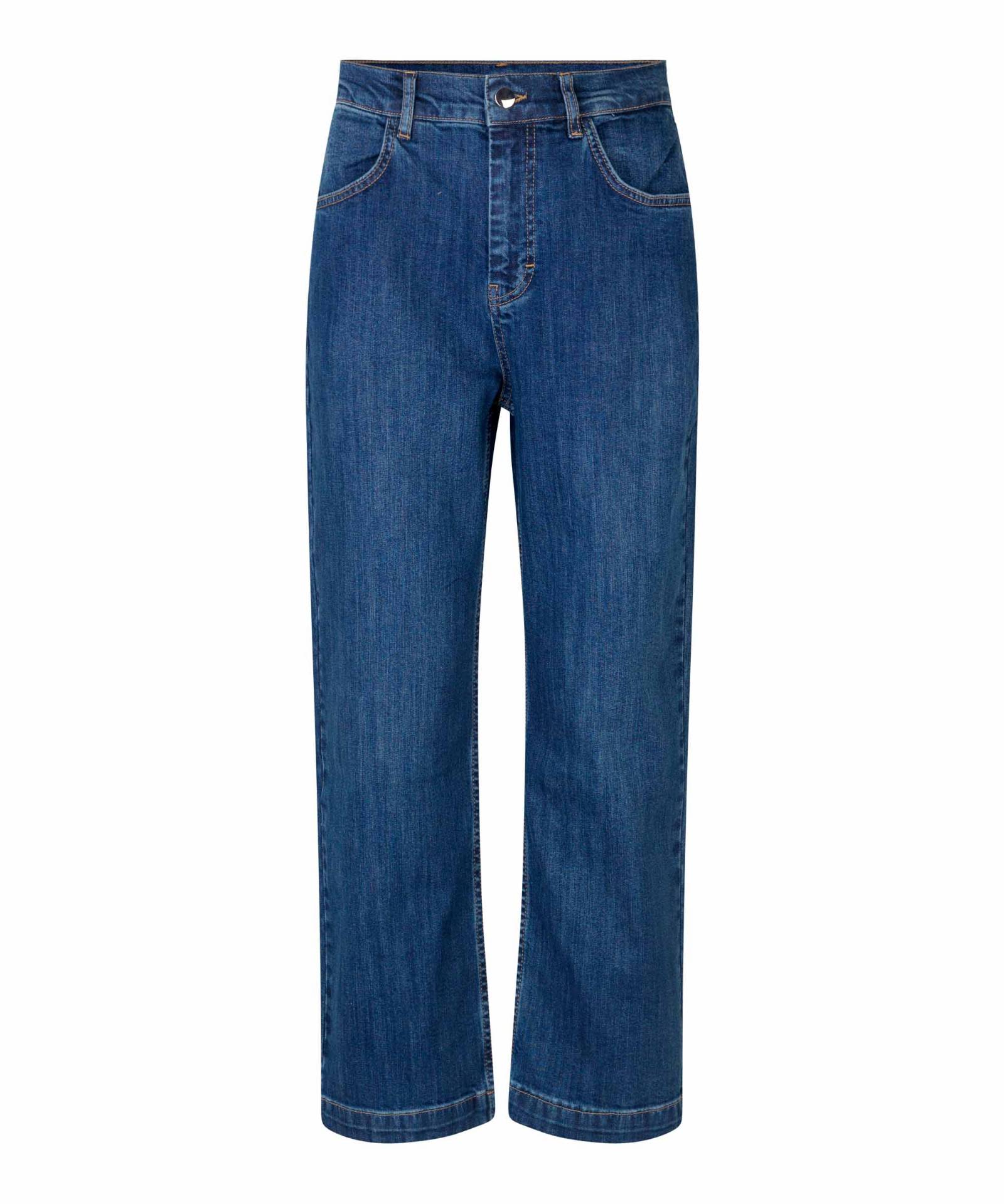 Disse jeans er uundværlige i garderoben. De har det perfekte denimlook med et afslappet fit, masser af stræk og en flatterende silhuet, der passer til enhver lejlighed. Den cropped benlængde giver et let kig til anklerne og afsluttes med et diskret bootcut, der skaber et moderne udtryk. Style dem med alt fra en oversized strik til en mønstret top eller feminin skjorte og få et ubesværet, stilrent look hver gang. Pasform:Fitted Trousers Materiale:98% bomuld, 2% elastan Vask:Skånevask