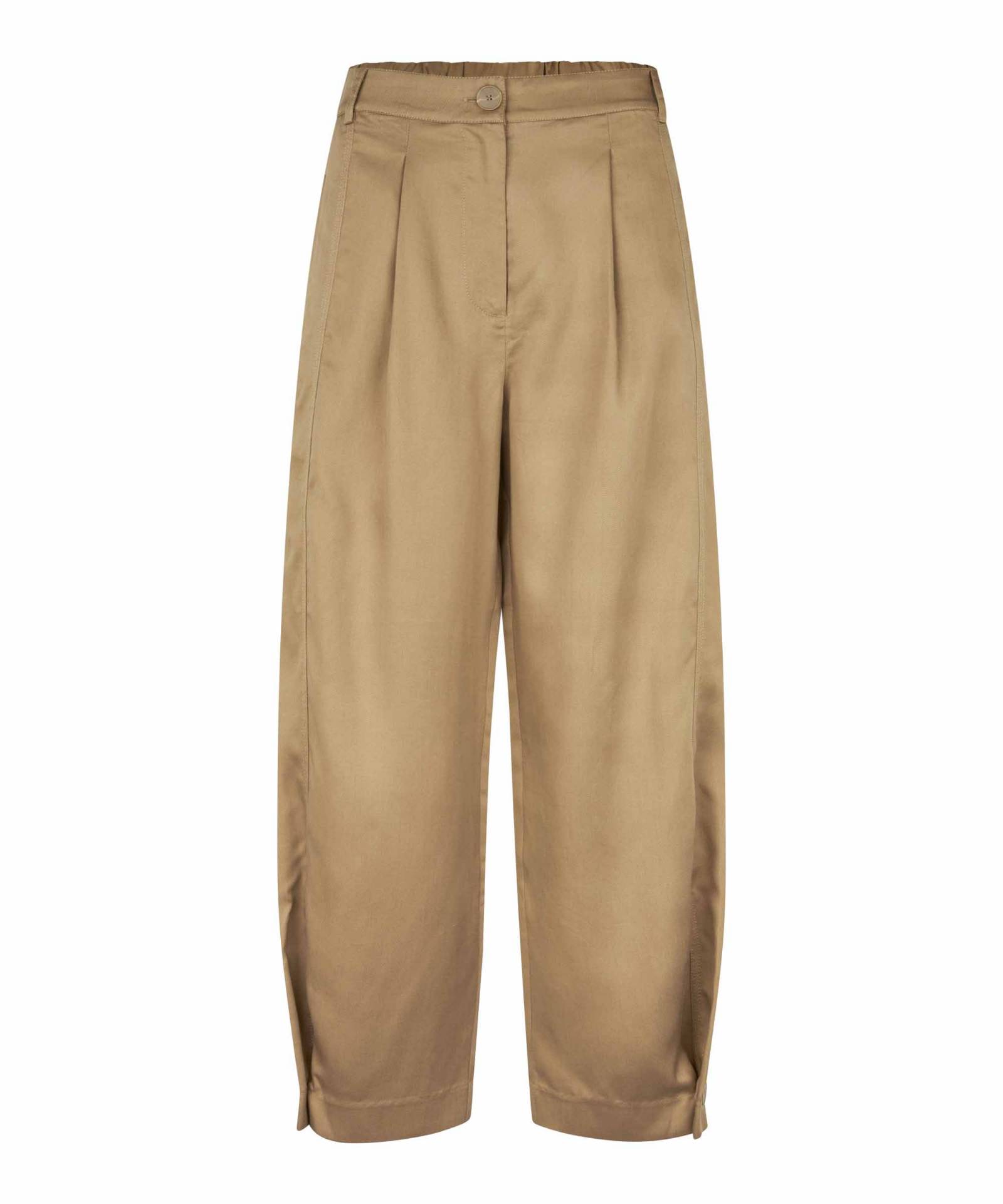 Disse bukser forener elegant simplicitet med maksimal komfort. De er fremstillet i en let, åndbar og smørblød kvalitet med et smukt fald. Det afslappede, lige snit kombineres med elastik bagpå, skrålommer og fine læg foran, der tilfører et feminint udtryk. Som en ekstra detalje har benene knaplukning, der giver et let twist. Style med den matchende skjorte for et gennemført look eller tilføj en top eller strik for et ubesværet, stilfuldt outfit til både hverdag og arbejde. Pasform:Casual Trousers Materiale:100% lyocell Vask:Skånevask
