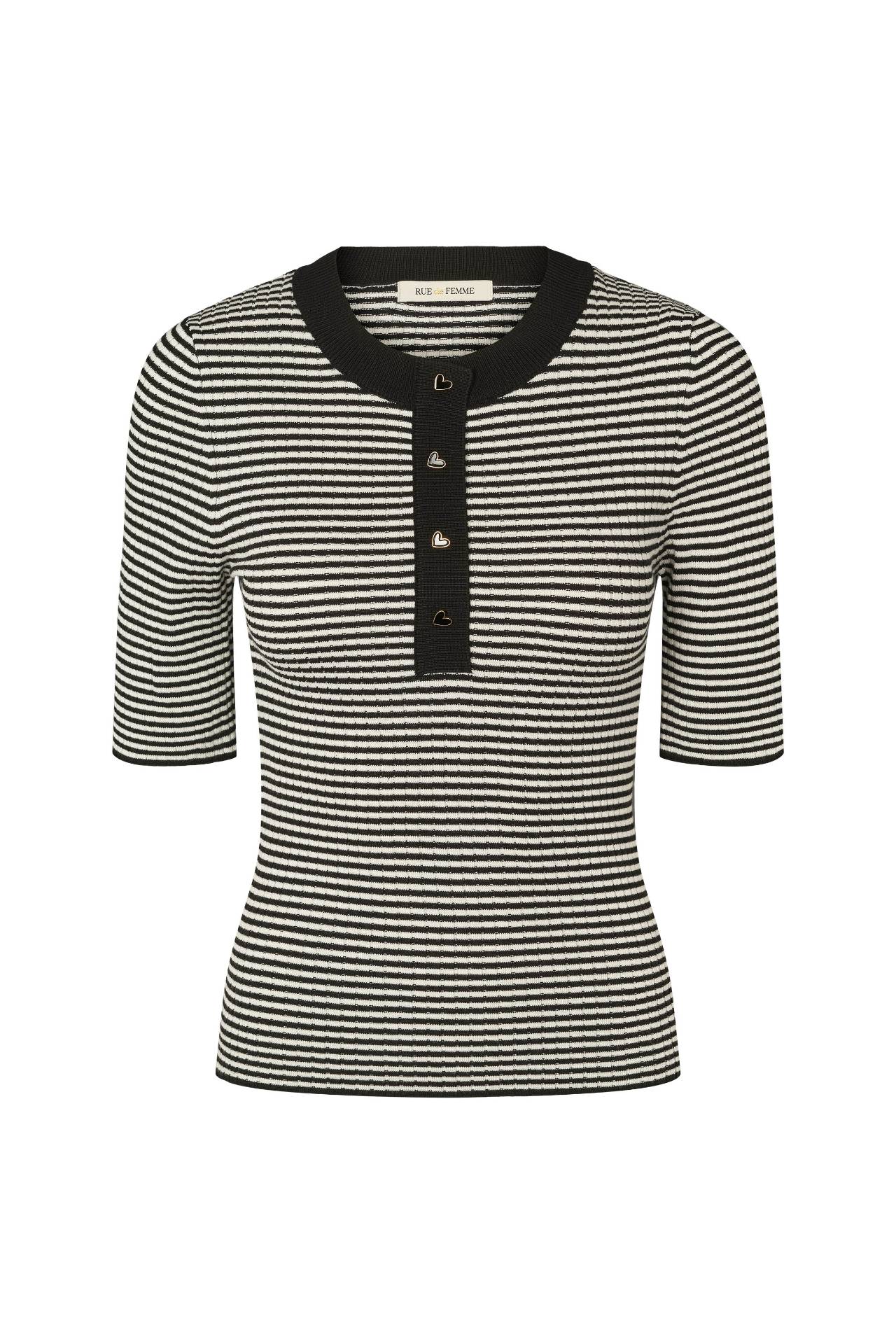 Smukkeste og blødeste strik fra Rue de Femme i hvide og sorte striber. RDFFennec-stribestrikket er en moderne fortolkning af den klassiske stribede sweater. Rene linjer og en tidløs farvekombination skaber et elegant, subtilt nautisk udtryk. Style den med shorts eller brede bukser for et afslappet, men alligevel sofistikeret sommerlook. - Pasform: Regular fit - Længde: ca. 58 cm (str. 38) - Klassisk stribedesign - Blød og komfortabel strikkvalitet Kvalitet: 80% Viskose (LENZING™ ECOVERO™), 20% Polyamid - ECOVERO