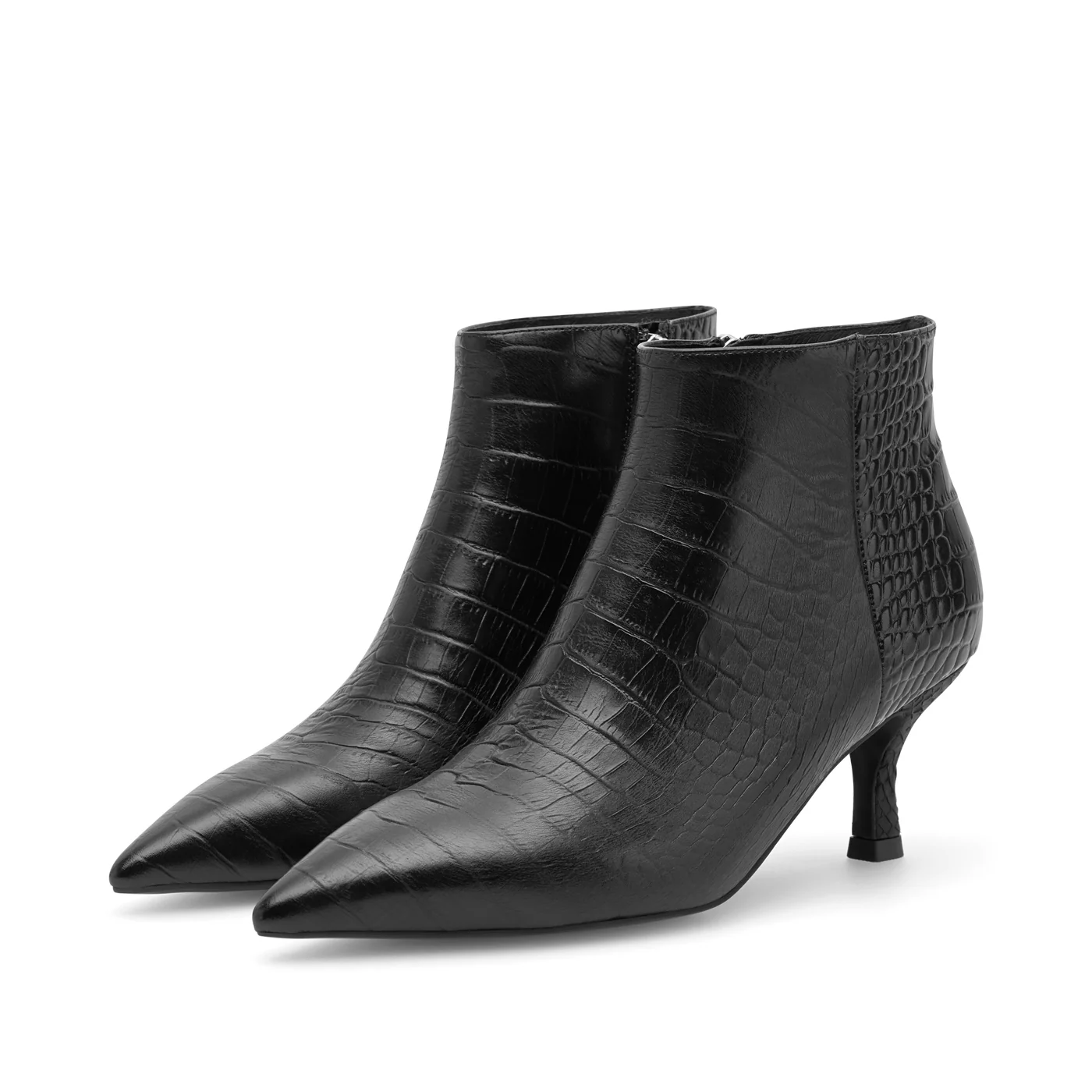 Smuk elegant støvle i blank croco med spids snude. Lukkes med lynlås i siden. Lille hæl 5,5 cm